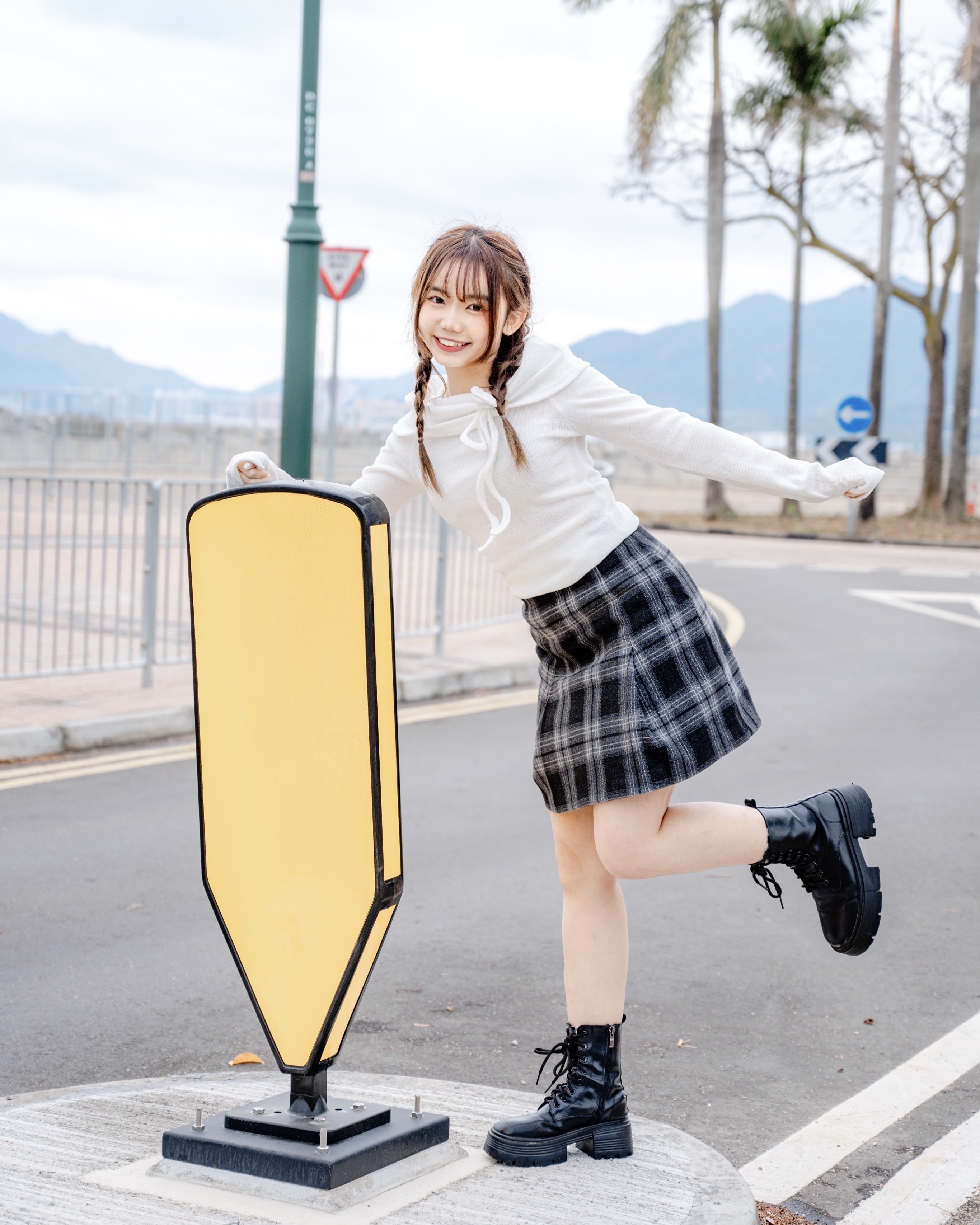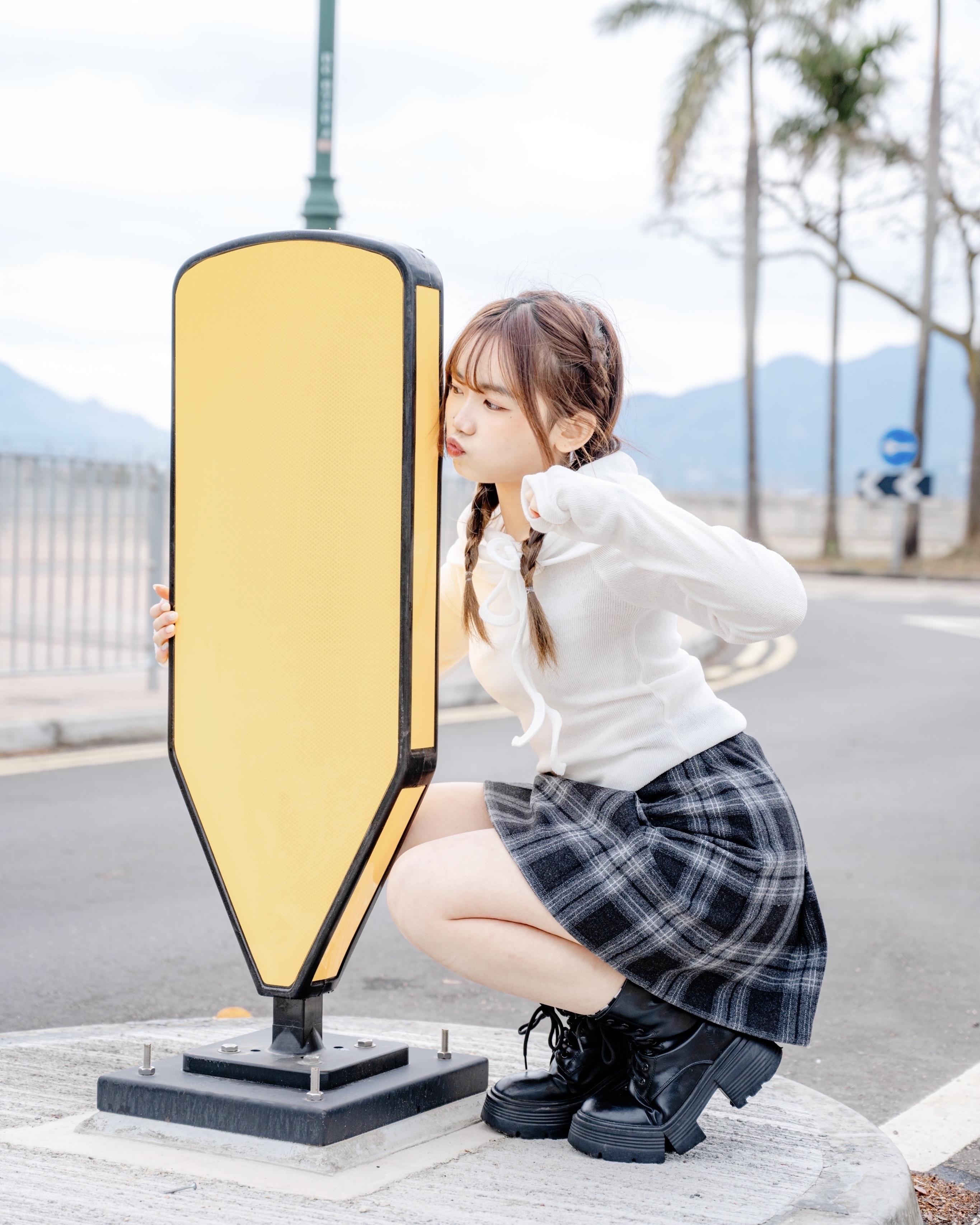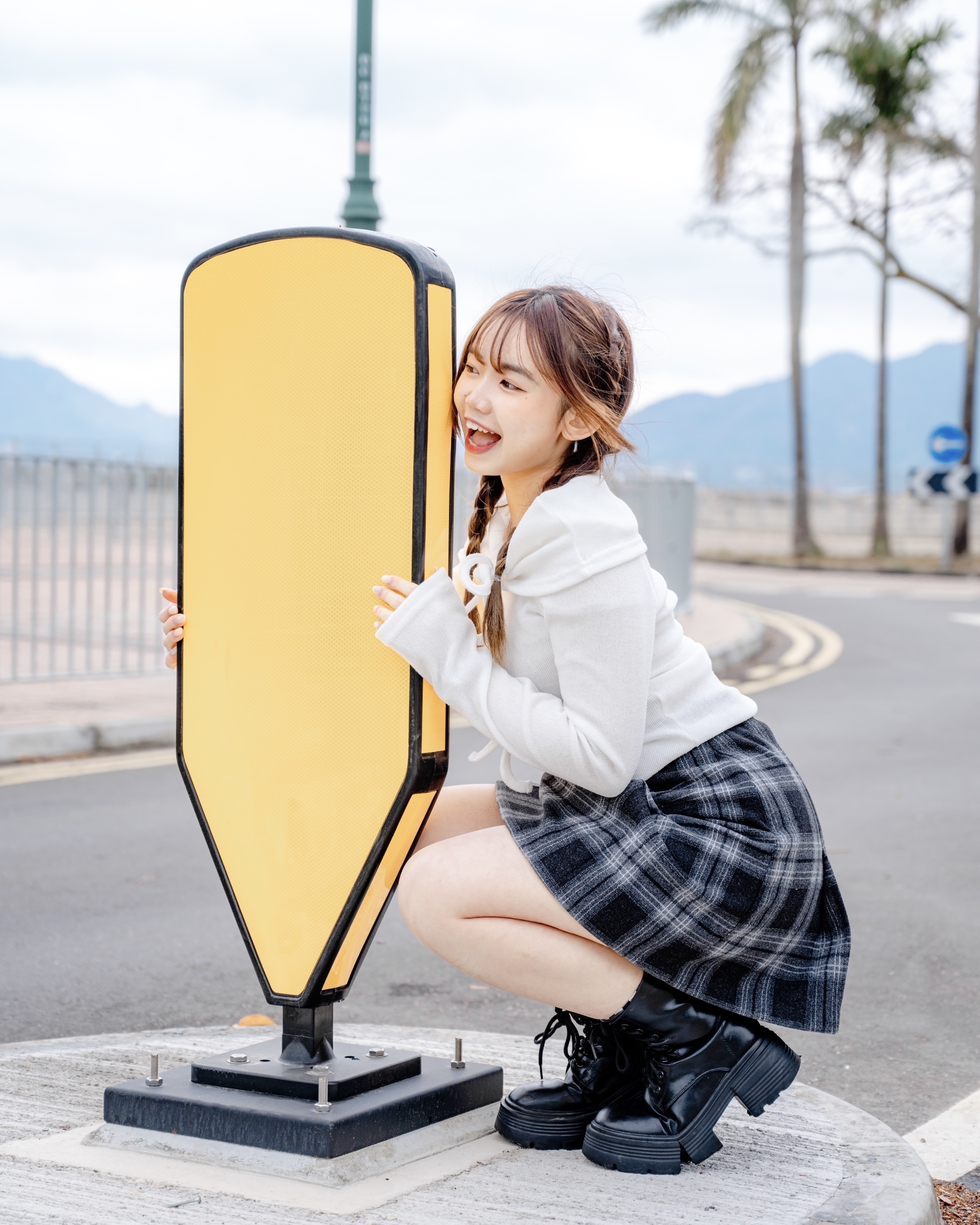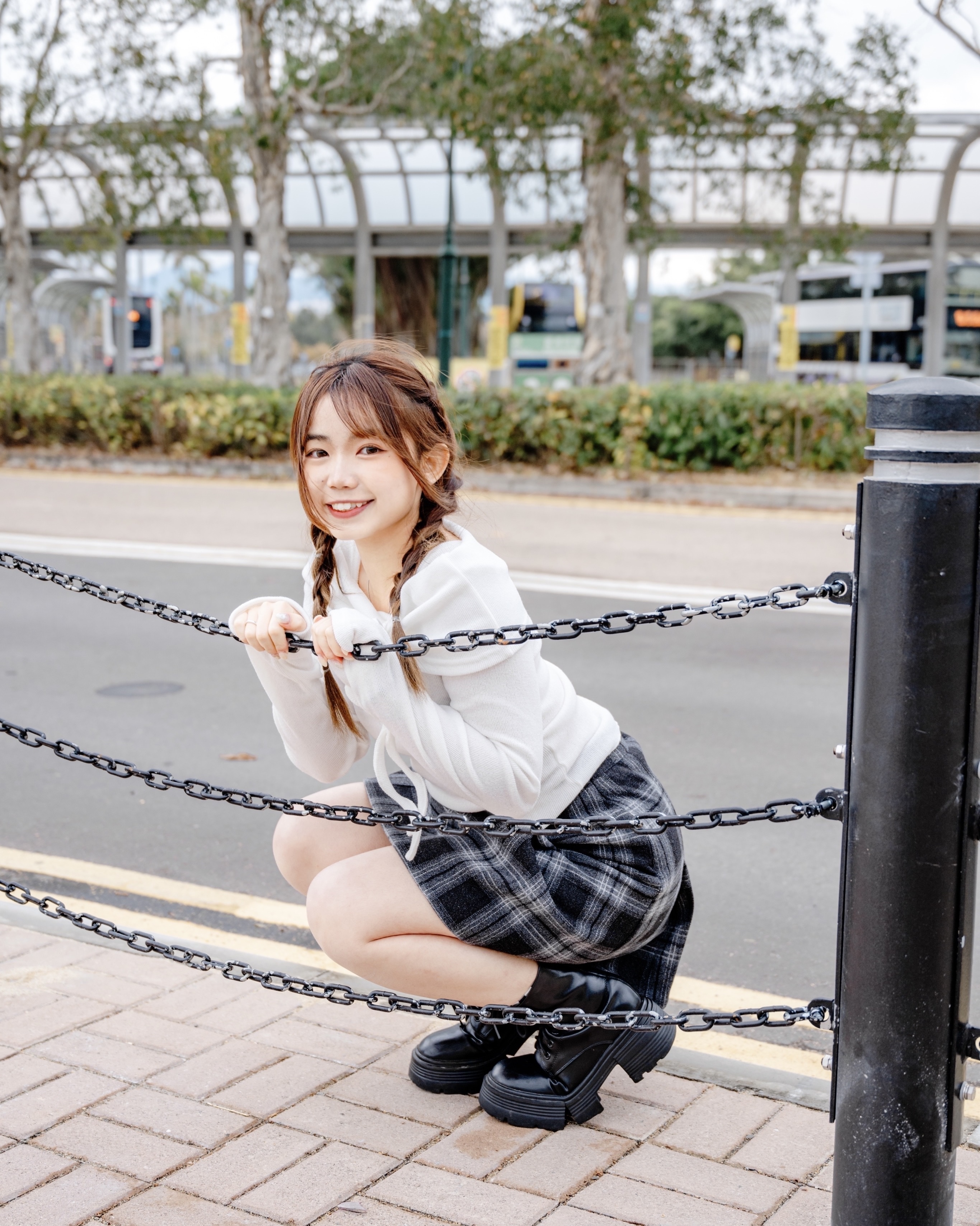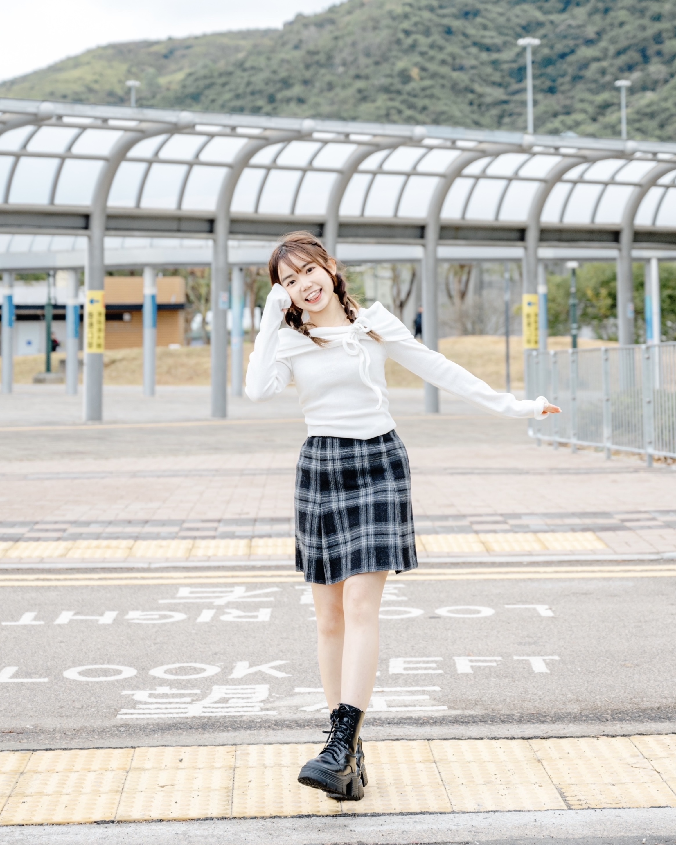 冬日毛絨格紋半裙 #black