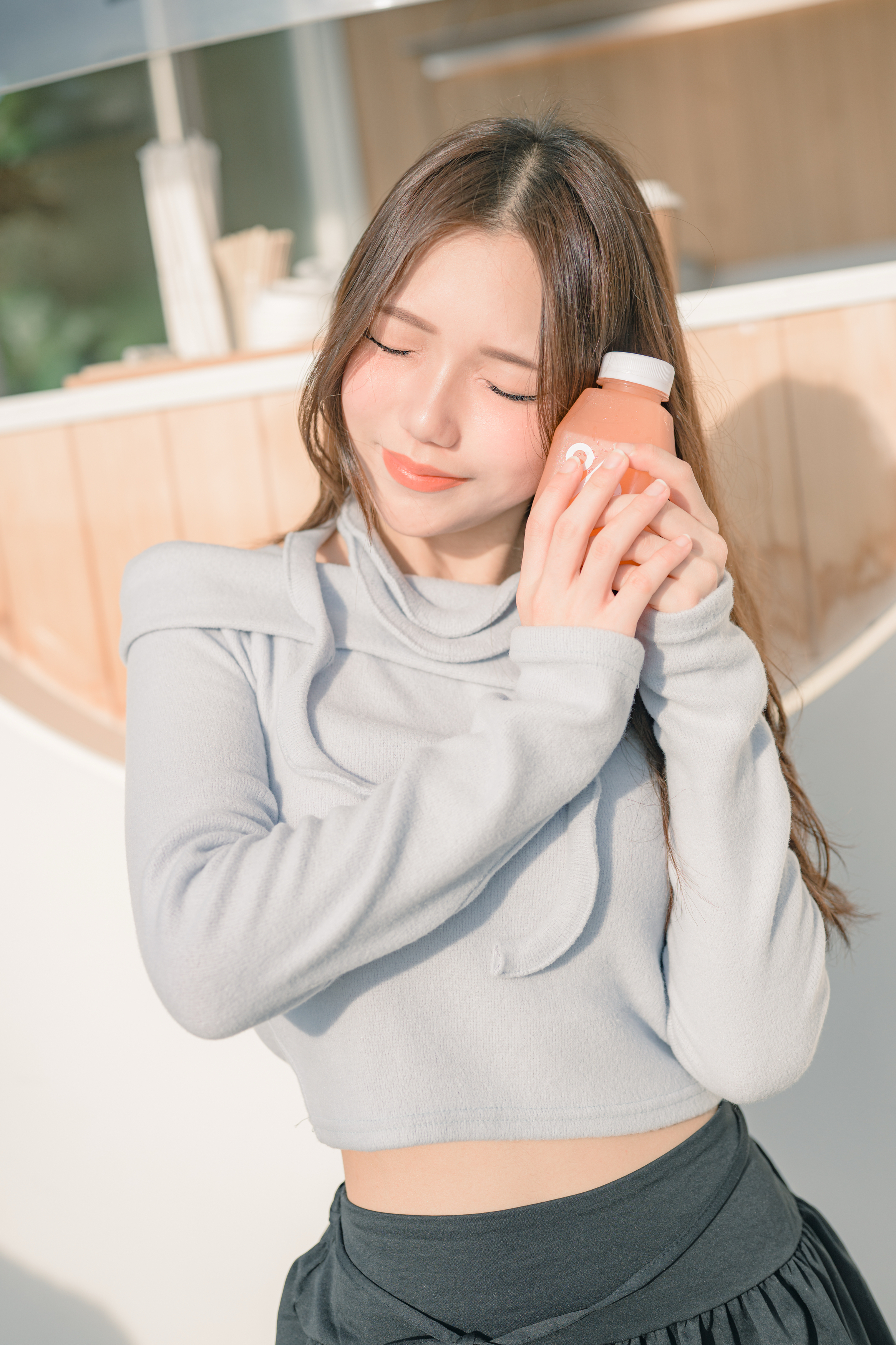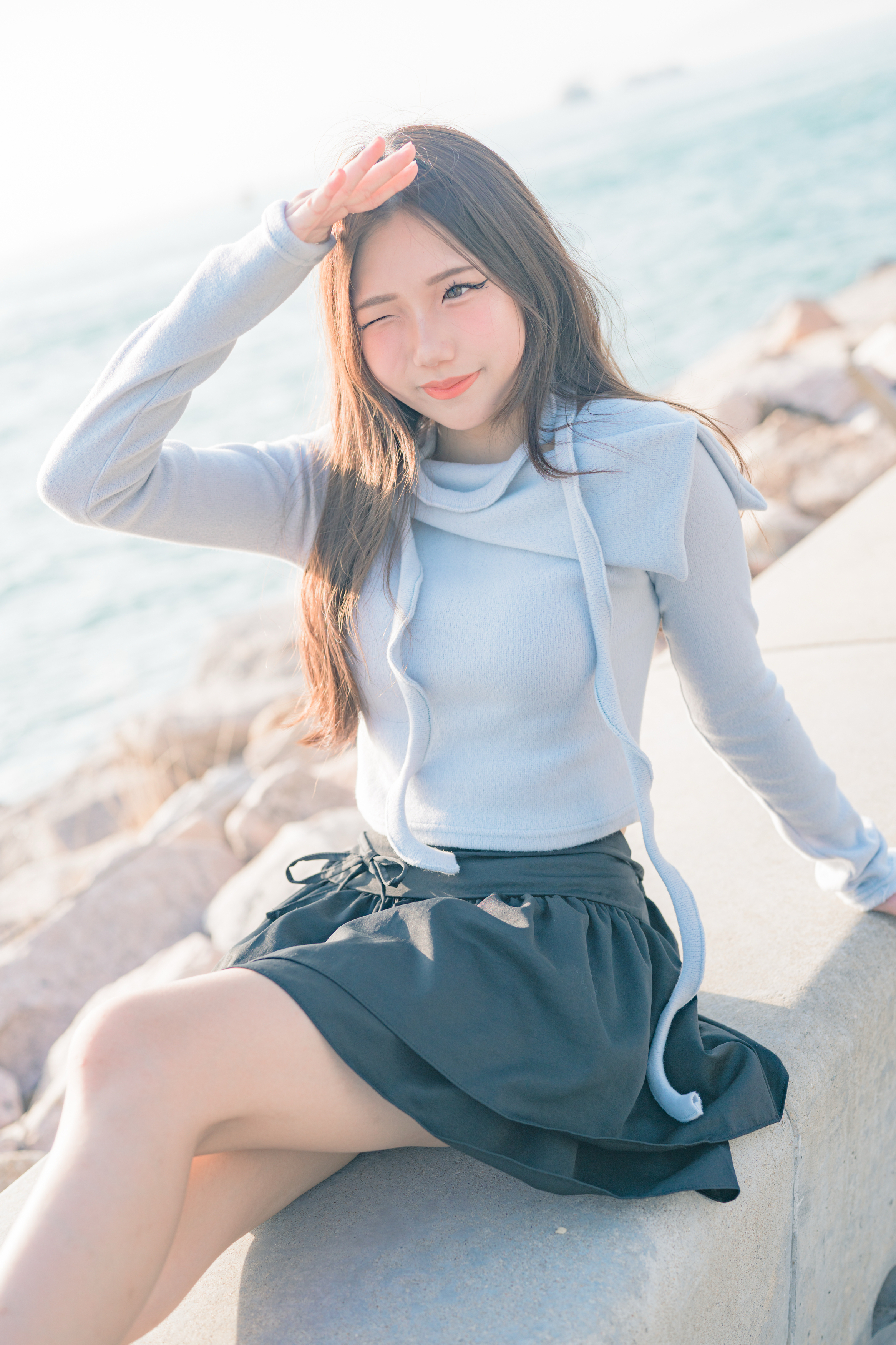 ❄️小圍巾~軟滑毛毛一字領長袖 #ice blue
