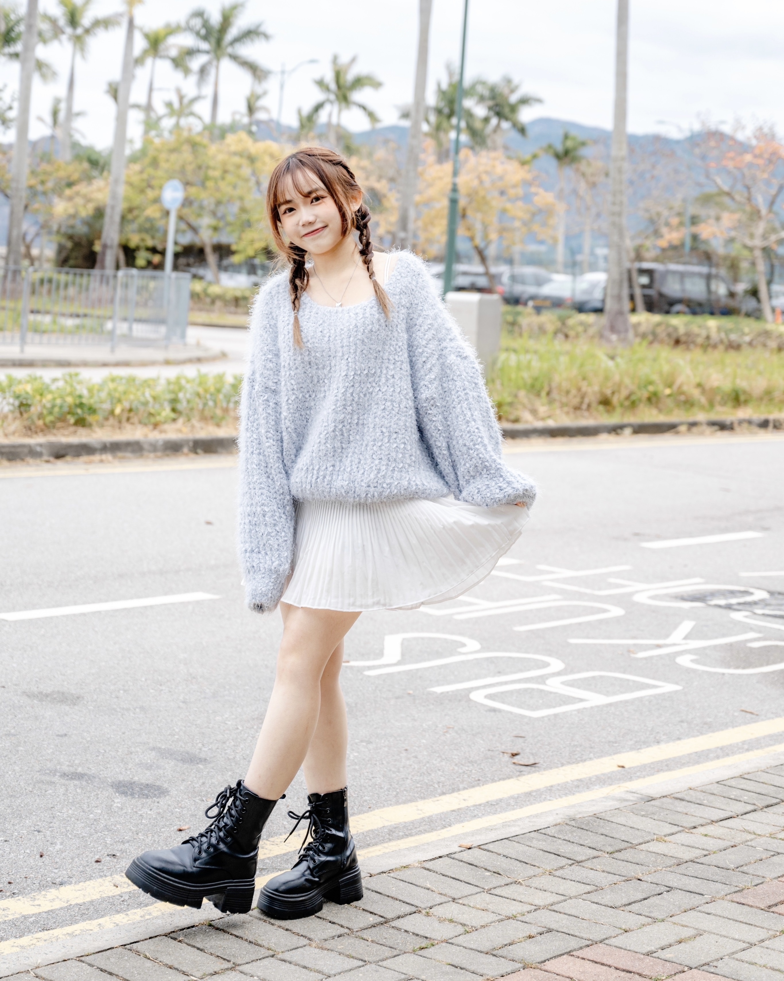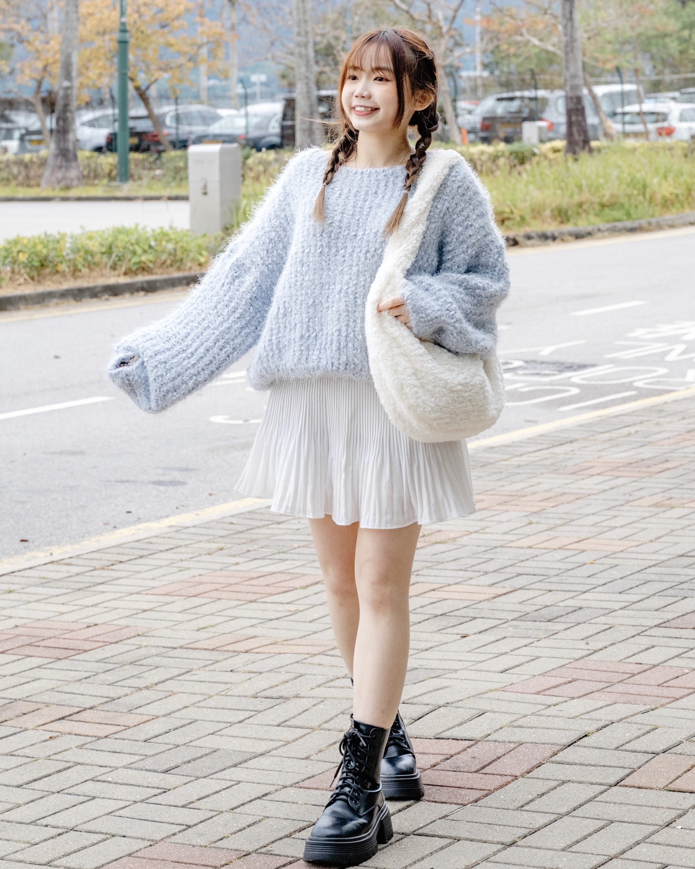 冬日寬鬆毛茸針織 #blue